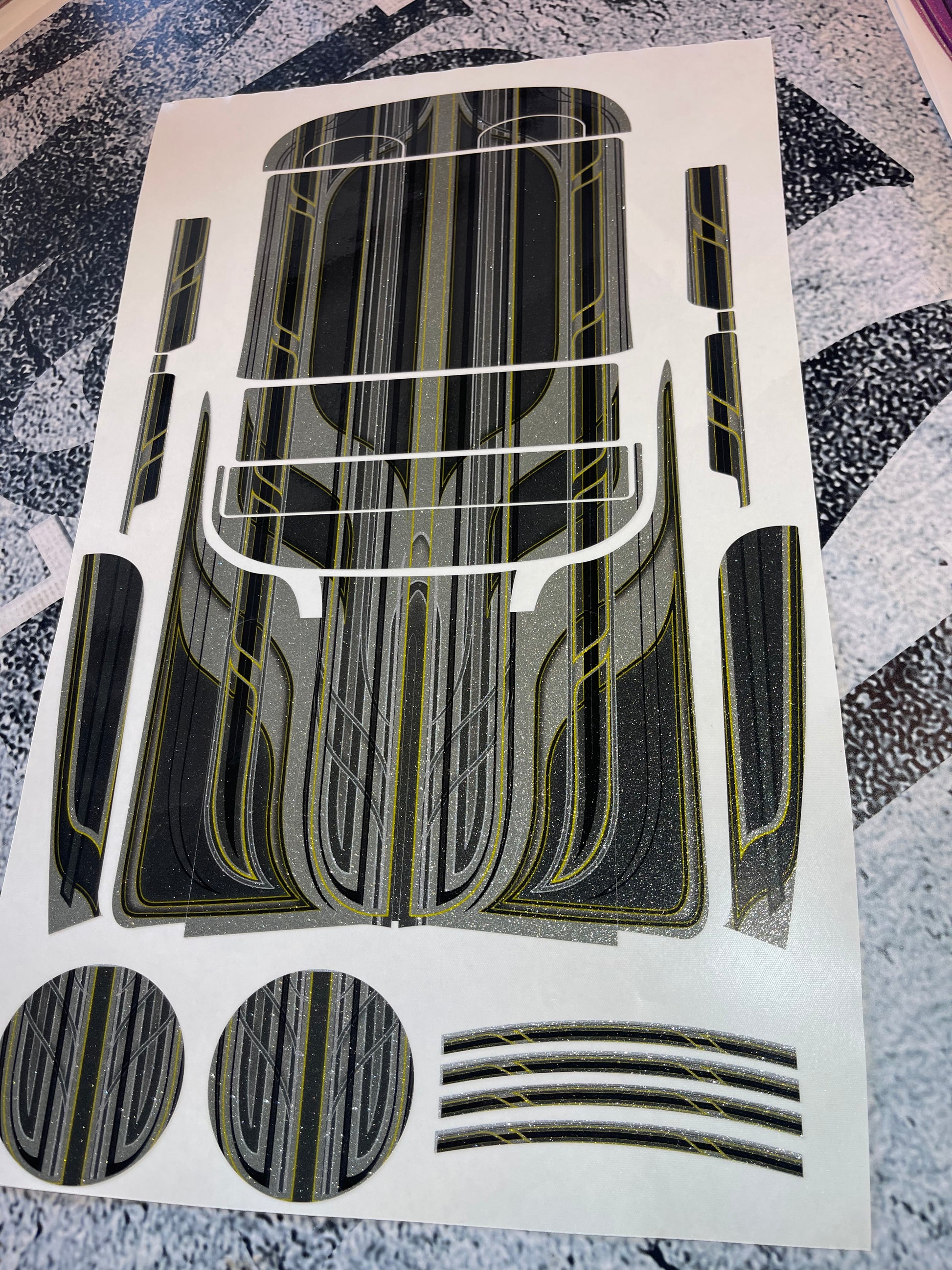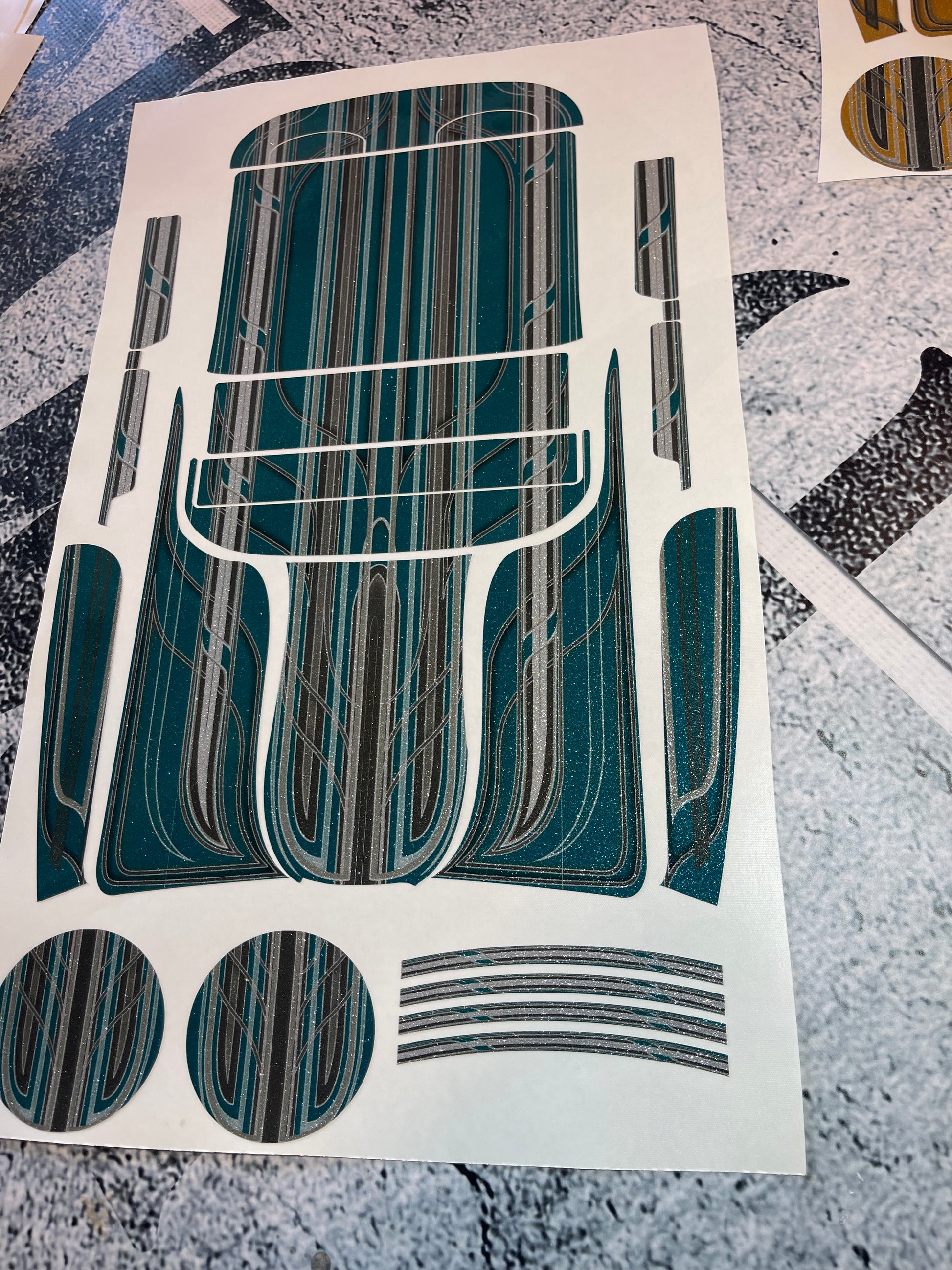"Upgrade your ride with our 1959 Impala dash back wrap kit! Bring an exotic look to your car with diamond flakes. Covers from dash to trunk for a sleek transformation. Say goodbye to boring, hello to bold. (No more drab stock look hooray!)"